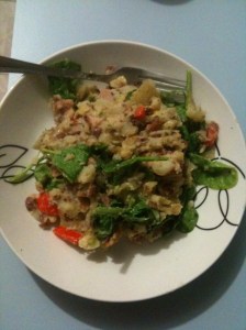 but the end result is, you’ve used up some leftovers and you have that comforting potato mash, but with less potatos and more healthy stuff than just plain old potato mash.