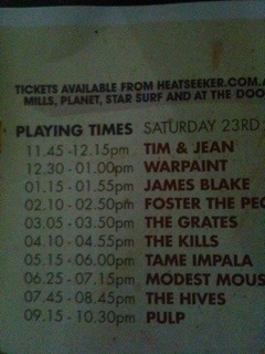 I only know 2 Pulp songs, which was double the rest of the group, so as Pulp was the last on the general consensus was to head home. We stopped when we heard what we thought was the opening to Common People, but it turned out to be the longest intro ever. So once it was confirmed that it wasn’t Common People (or Party Hard, the other Pulp song I know), we headed towards the train. When we figured we had just missed the train (and it was 25 minutes until another one) we got in a taxi, had the (almost traditional) post-gig Maccas (they were out of ice-cream!), and turned in after an awesome festival.