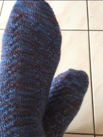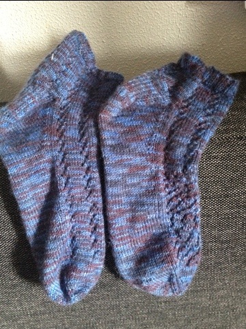 These waterfall socks were recommended to me by knitting on circular needles when I was having a twitter conversation regarding socks. Now I don’t think I’ll go back. I learnt the turkish cast on for a trio of baby socks for my nephew (I’ll have to show you those, they are adorable), and then went chasing patterns for grown-up toe up socks.