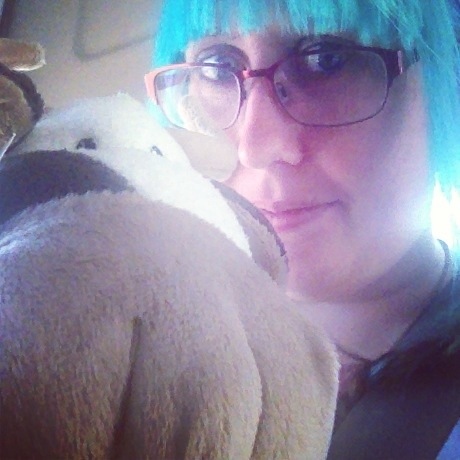 A girl with blue and pink hair 🙂