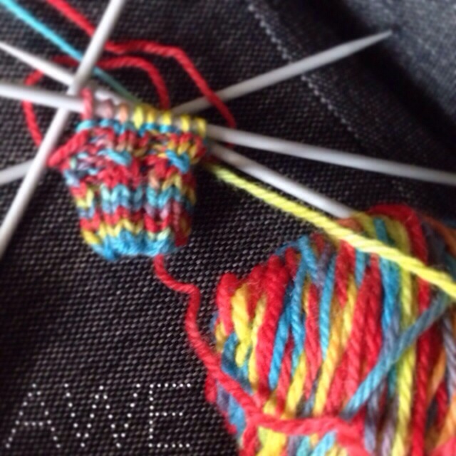 Not only is this more hand dyed (which I didn’t think I was able to do) but watching 4 needles come together and produce a circle still fascinates and impresses me.