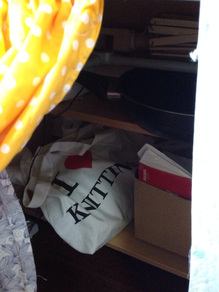 Instead has his own nook next to the printer, the box of paper supplies, and the yarn winder & swift. Hidden behind a curtain, Steve spends most of his days in peace and quiet.