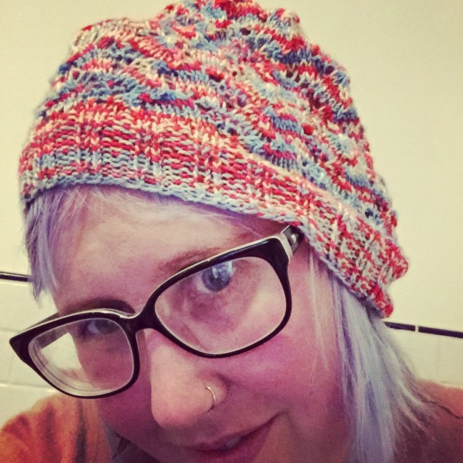 I love the short row brim and will definitely have fun experimenting with different ways to wear it. I’m also considering blocking it (or just wear it outside – it’s pretty rainy at the moment) to stretch out the lace.