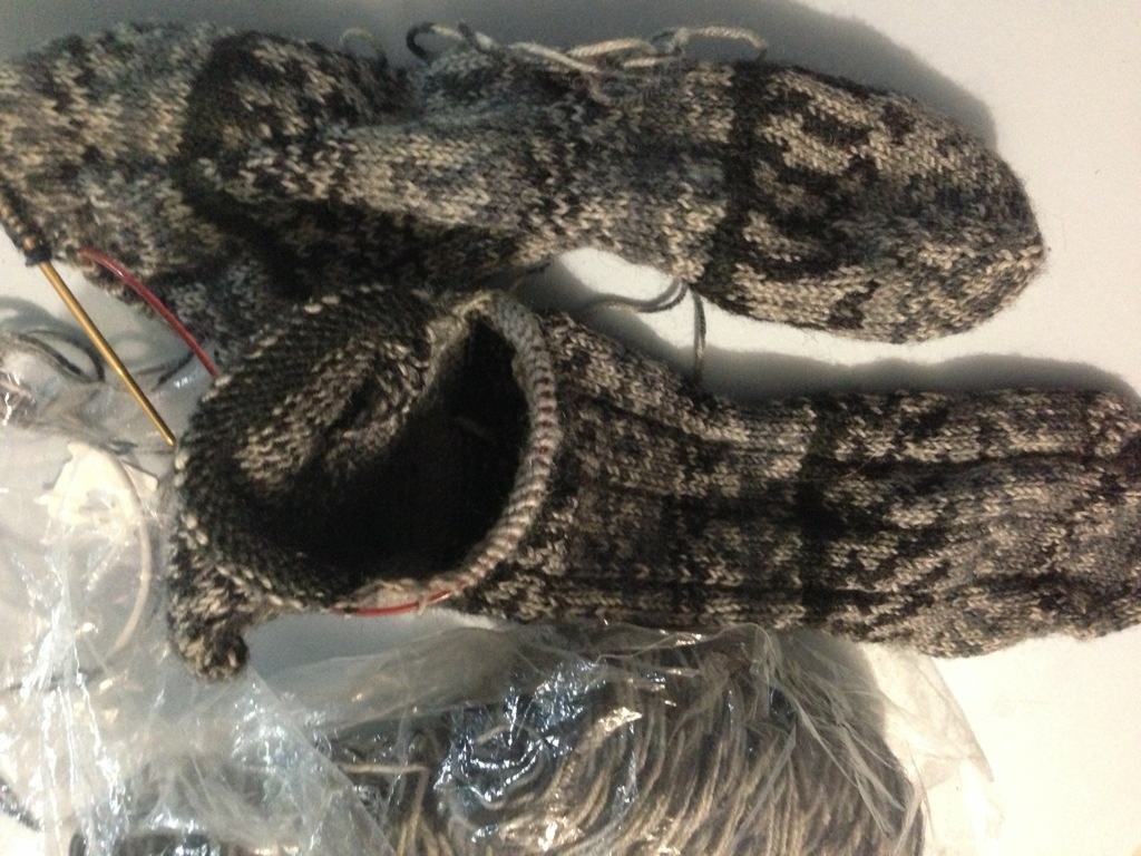 I have a pair of vanilla latte socks which I’ve turned the heel on one to discover that it’s too big for it’s intended recipient my dear ol dad. But fortunately it fits the big boofer size 12 feet of HeWhoFishes.