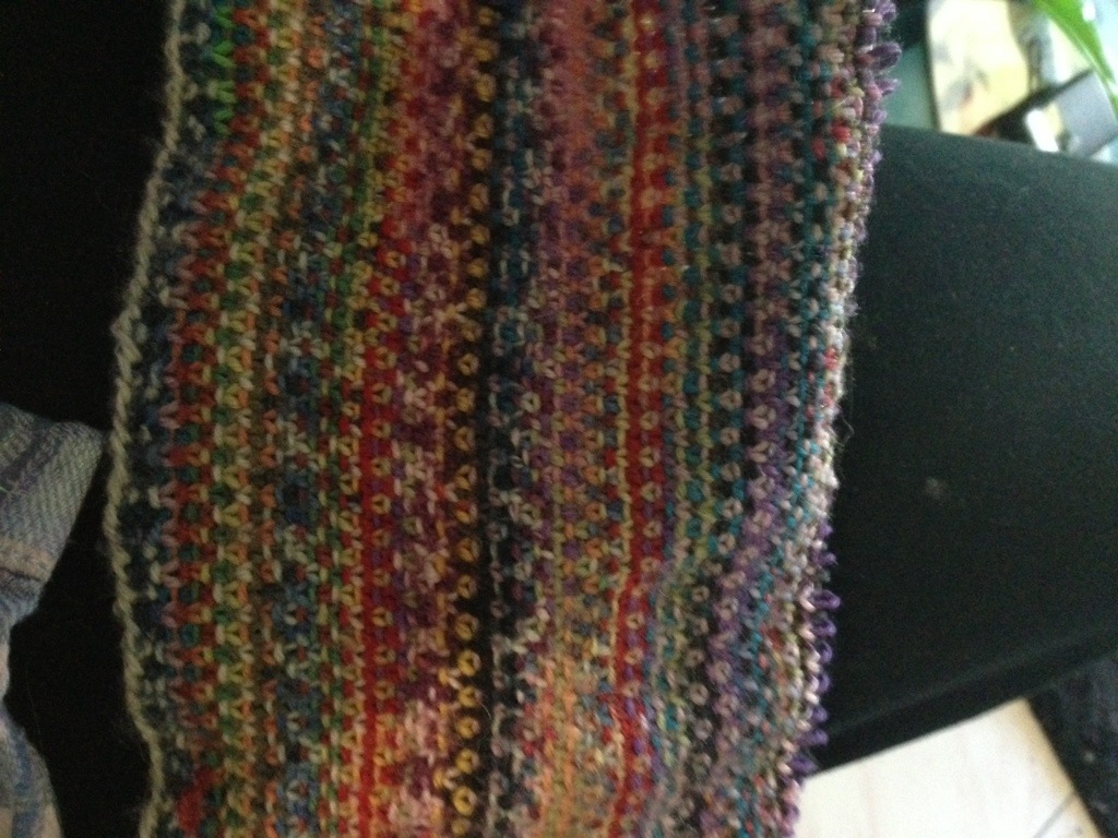 I love the effect of the slip stitch so much that I keep stopping to stare at it. I just can’t get into a rhythm with the yarn forward, slip, yarn back stitch.