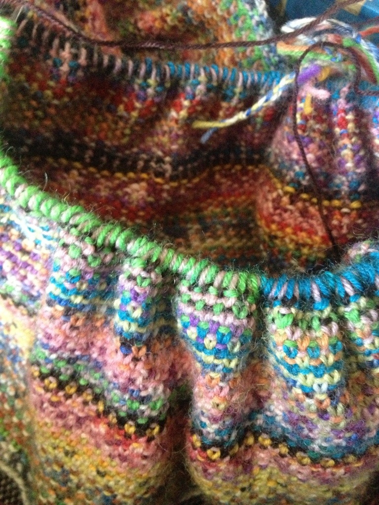 Parcel is now at the point where I need to figure out how many stitches I have. Because I didn’t follow the pattern (because I didn’t read the instructions properly) I now need to decrease sharply, or do some maths.