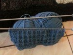 The one on my needles in Moda Vera Marvel Blue is waffle knit dishcloth. I’ve had a bit of trouble with this pattern. I’ve frogged it 3 times now because I missed a pattern row. But my concentration isn’t all that great after 3 wines and watching a game of football which is decided in the last minute.