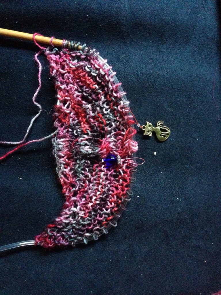 Although my shoulder is improving, after 8 hour at my desk job it gets pretty tired. However if I don’t get to knit, I get really cranky. So I’ve been trying to sneak in a little tiny bit of crafting.