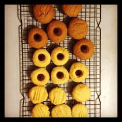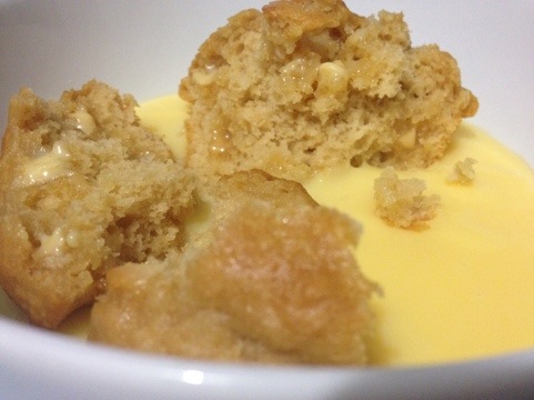 Divide into greased muffin trays and bake in 180deg oven for 25-30 minutes.