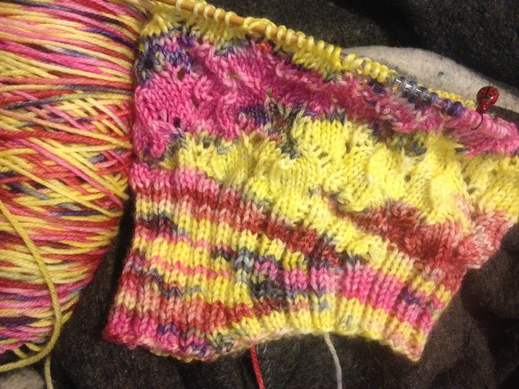 On the knitting front, I have had a bad case of cast-on-itis. Where nothing I already have on my needles seems right so in casting on something new. This one in particular I love the yarn, love the pattern, but not the combination. But I don’t know whether to frog or continue.