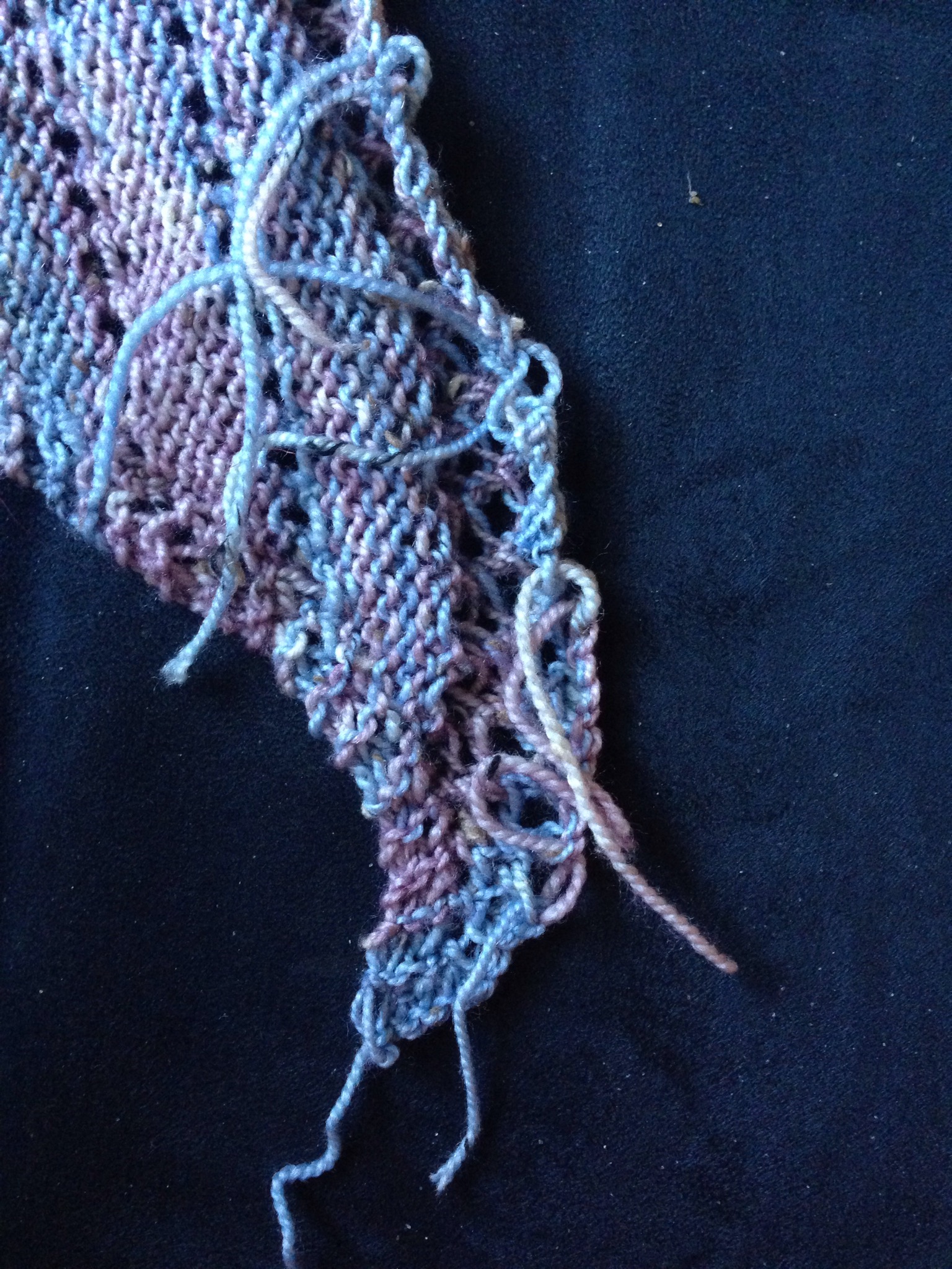 Then (and this is some seriously wack shit…. ) I counted the number of stitches I had AFTER completely the lace section and I had LESS than what the pattern said I should have had BEFORE I started the lace section?? But I still have increased the pattern????? (All my twitter followers have just had a collective moment of ‘OHHH!!! That’s what Bek was yelling about last night!”)